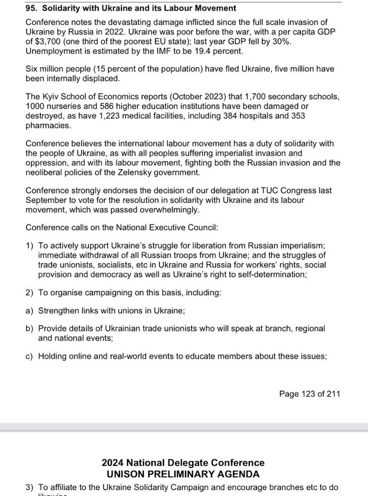 Congress resolves to affiliate to the Ukraine Solidarity Campaign and to encourage branches and regions to invite USC speakers to their meetings.